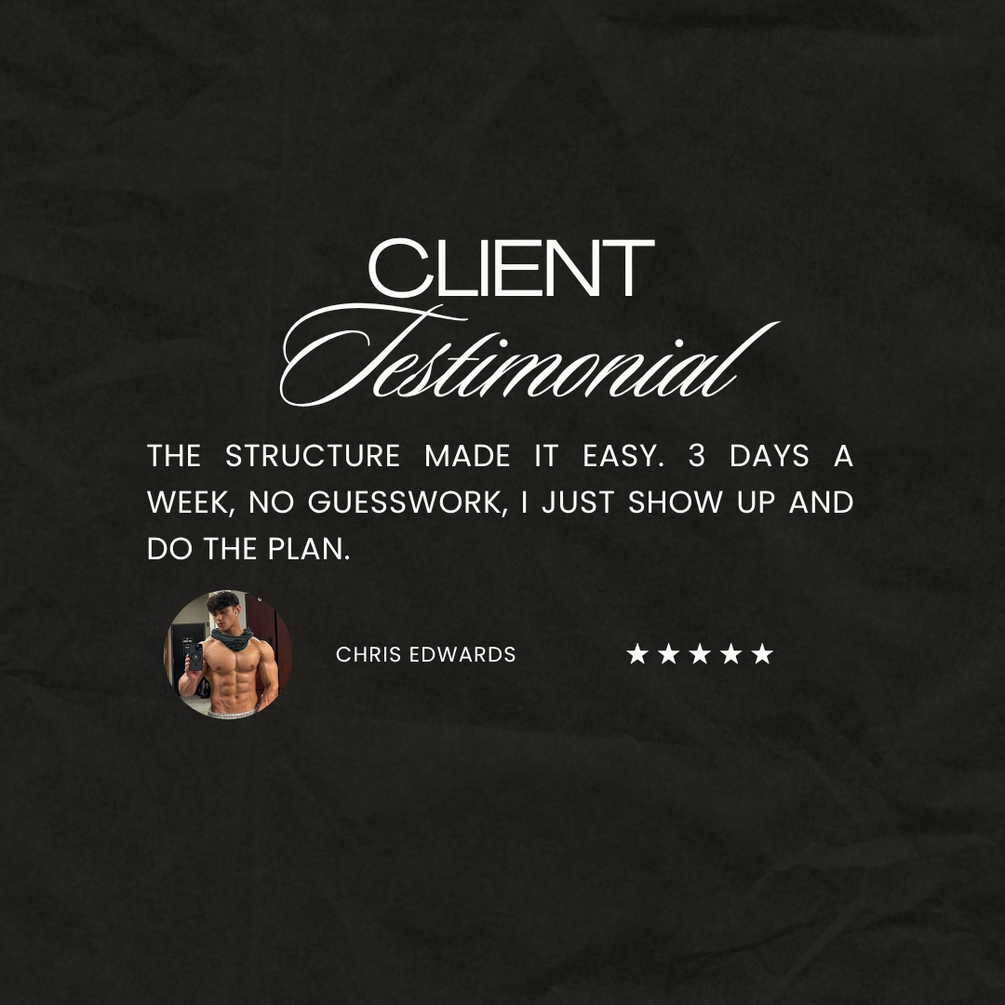 - 3 Sessions/Week — Built for hardgainers. Strength progression baked in.